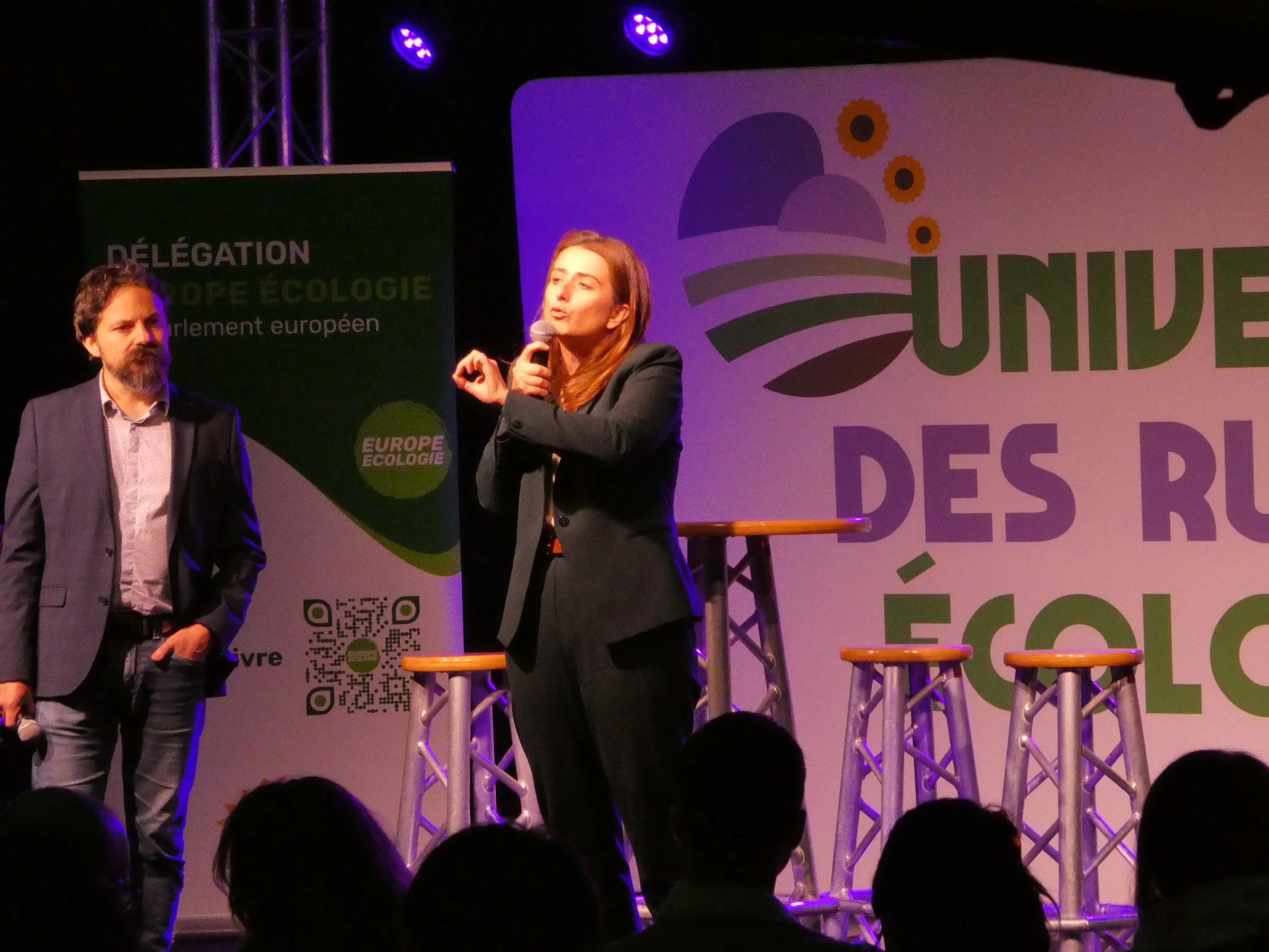 Venir aux URE, c'est venir faire le plein de débats et de rencontres, avec des responsables écolos comme Marine Tondelier et Marianne Floch des Jeunes Écologistes, de député·e·s des ruralités comme Marie Pochon (Drôme) et Jean-Claude Raux (Loire-Atlantique), de sénatrices et sénateurs comme Daniel Salmon (35), Ghislaine Senée (78) et du Président du groupe au Sénat Guillaume Gontard (Isère), lui-même ancien maire d’une commune de 300 habitant·e·s. Et également des invités comme le député socialiste du Calvados Arthur Delaporte et Manon Rousselot-Pailley, 28 ans, la présidente nationale du MRJC (Mouvement rural des Jeunesses chrétiennes), fille d’éleveur et viticulteur de Lons-le-Saulnier (Jura) lors d’une soirée dédiée aux cahiers de doléances, mais aussi et surtout de nombreux acteurs locaux avec des récits, et plein d'exemples et d'arguments concrets. Tous toujours motivés et inspirants malgré le contexte national plombant.
