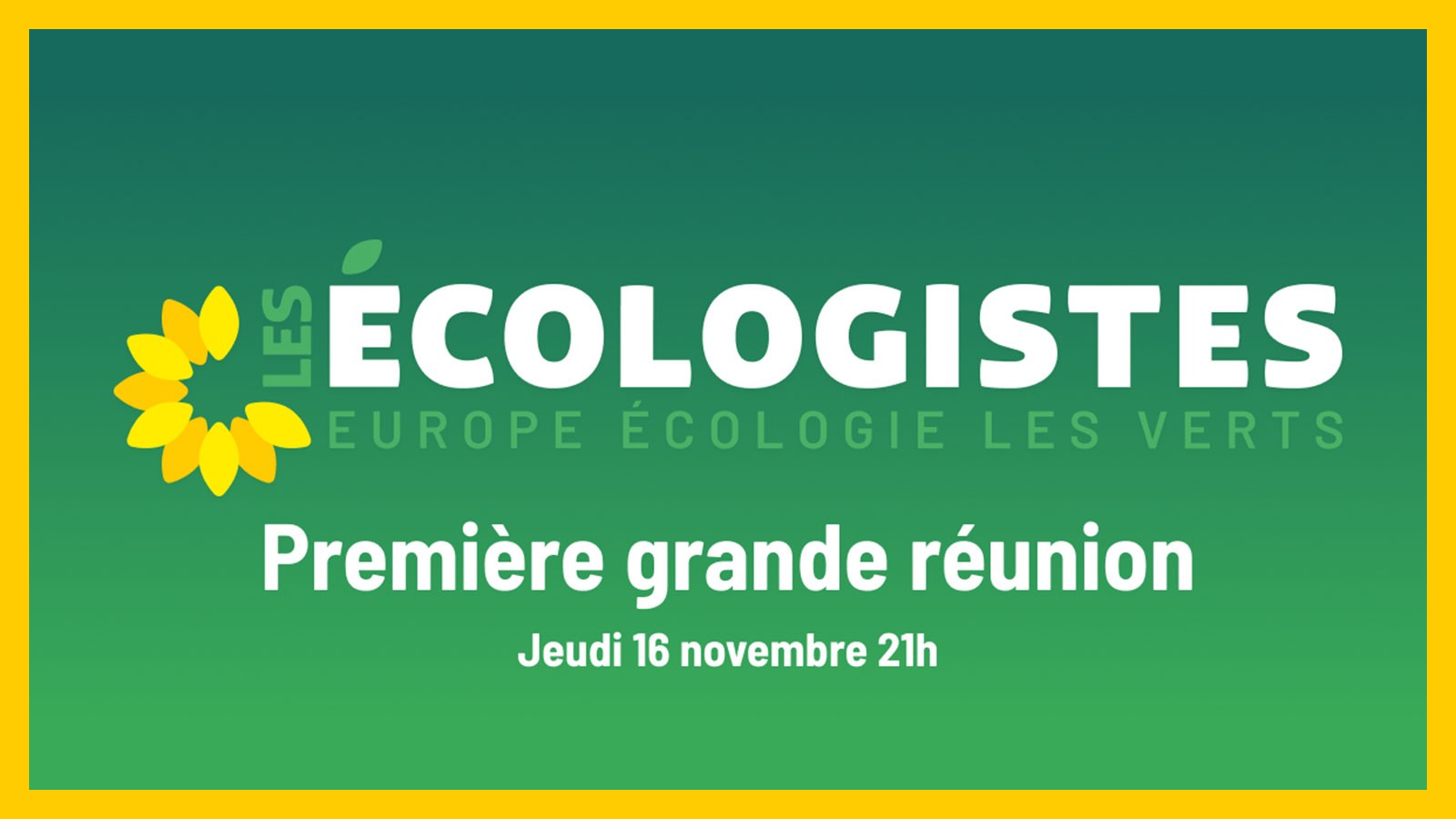 Lancé le 14 octobre dernier à Pantin, le mouvement Les Écologistes se réunit en ligne, ce 16 novembre à partir de 21h00, afin de faire un premier point et découvrir le mode de fonctionnement et les outils proposés pour faire grandir l'écologie vers de beaux succès !